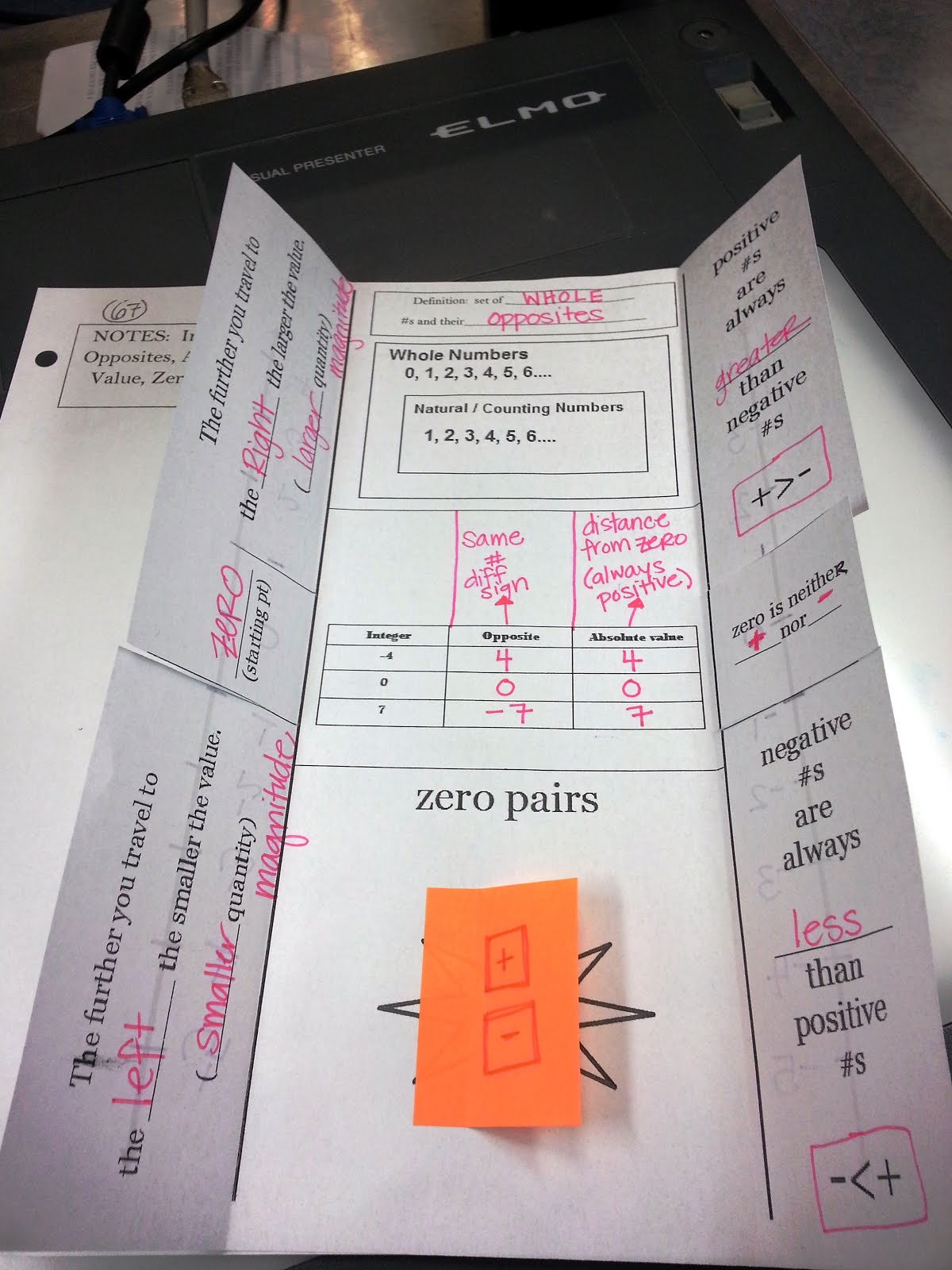 nonetheless, I think i created a foldable for us to use at the end of the week once we have defined integers, compared and ordered integers, defined 'opposite' and 'absolute value' and also introduced 'zero pairs.'